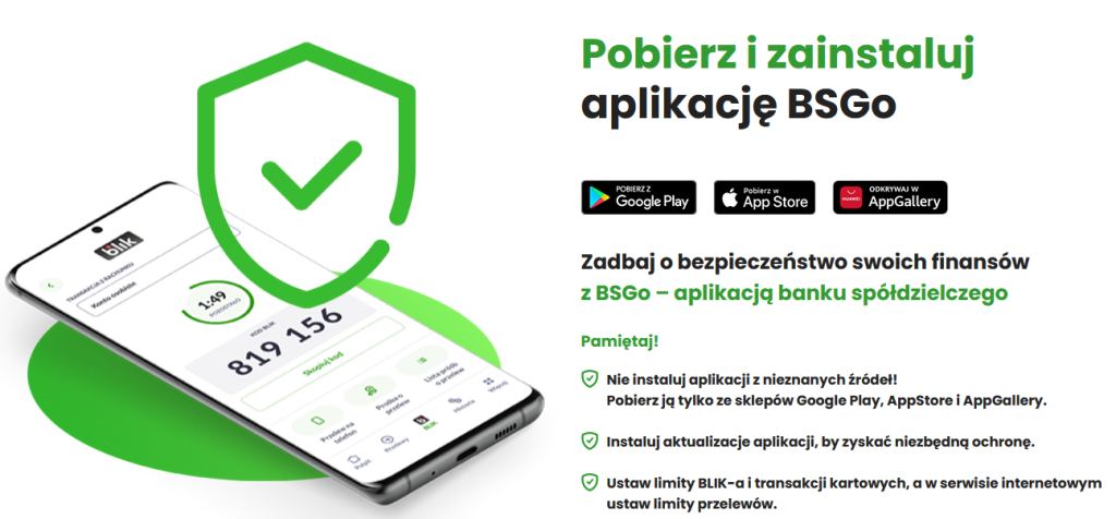 Wystarczą 3 kroki, aby korzystać z BSGo – aplikacji banku spółdzielczego.